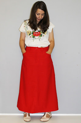 This next one is my dream denim skirt. I actually salvaged the denim from a pencil skirt I started making before Christmas and was starting to hate (it can be seen at the end of this post)! I regretted wasting my good denim on it so carefully unpicked it and together with the fabric I had leftover was able to cut this skirt. so happy!